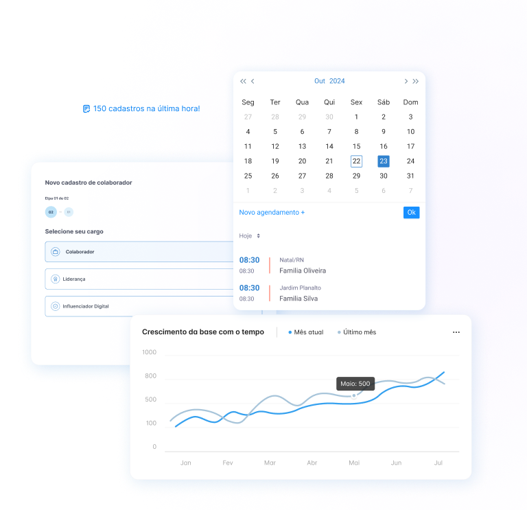 Gestão de Base de Apoio: Organize e gerencie seus apoiadores, líderes, influenciadores digitais e colaboradores.